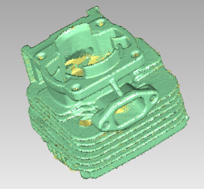 杭州思看科技有限公司為客戶提供了手持式三維激光掃描儀HSCAN331,現(xiàn)對小型工件也能提供快速全面的掃描方案,在小型汽油機缸體上貼上少數(shù)標記點(4個或以上),借助貼有標記點的桌面,通過過度拼接的方式,將工件完整地掃描出來,再將掃描數(shù)據(jù)導入專業(yè)的檢測軟件中與原始數(shù)模擬合比對,獲得比對報告,查看偏差大小以及葉片厚度。